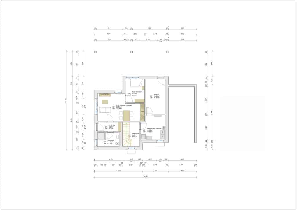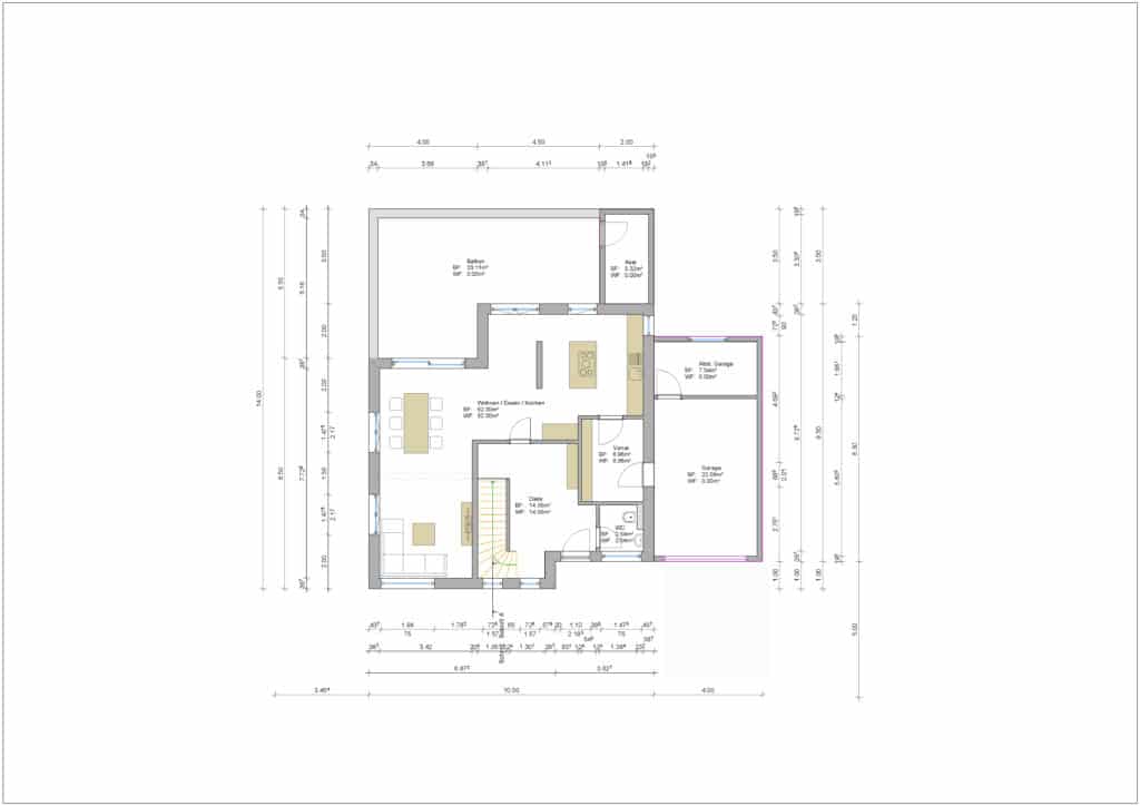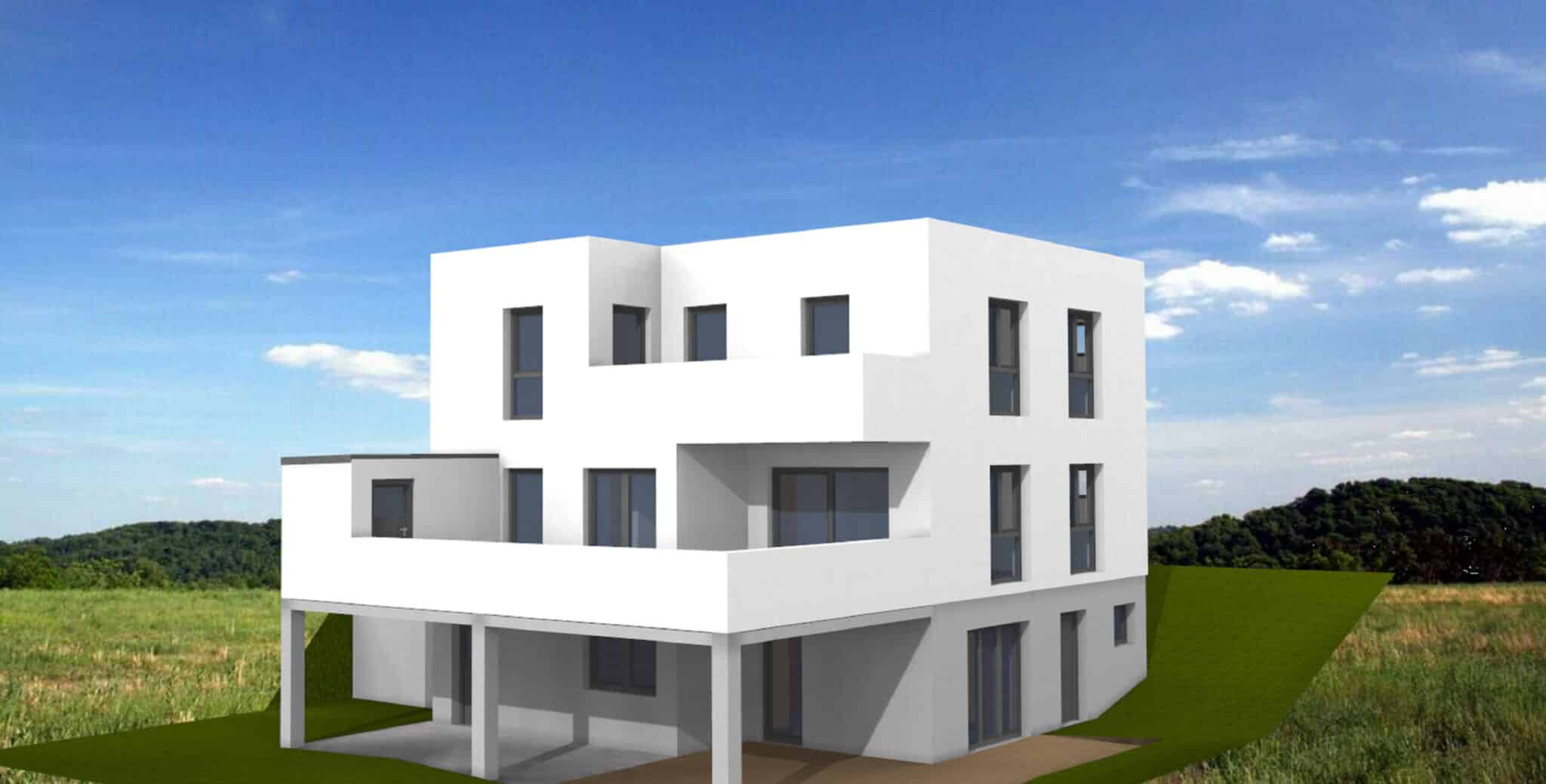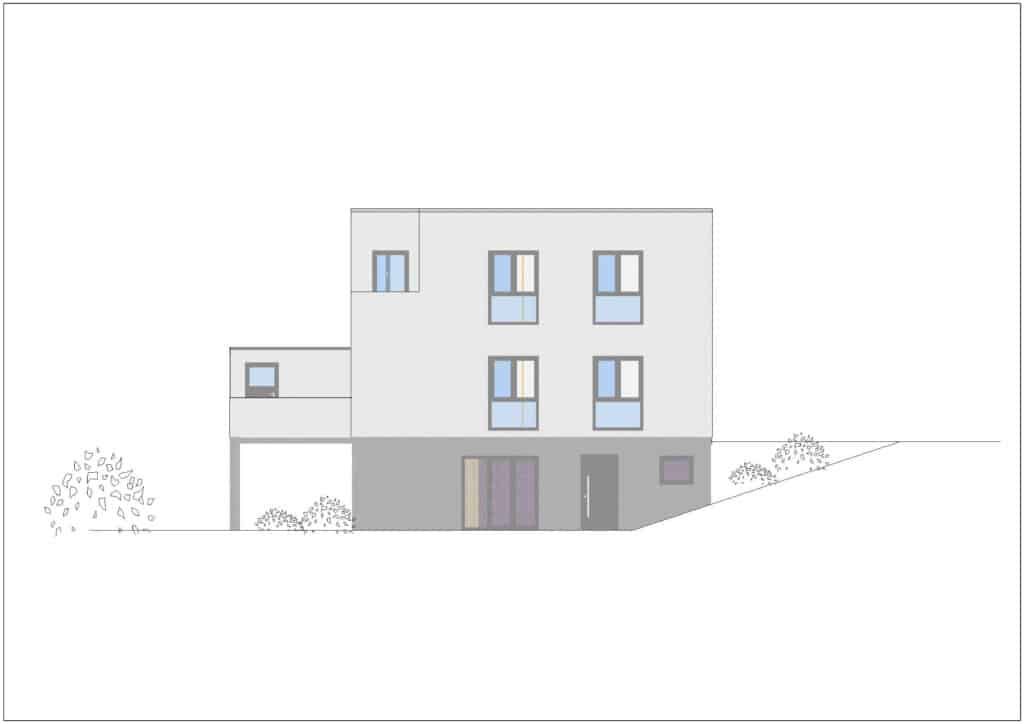 Dieses Bauhaus ist hier mit einem Keller mit Einliegerwohnung abgebildet. Einen Keller können wir Ihnen optional zu jeder Hausidee mit anbieten. Dazu ist vorher immer ein Gespräch notwendig.