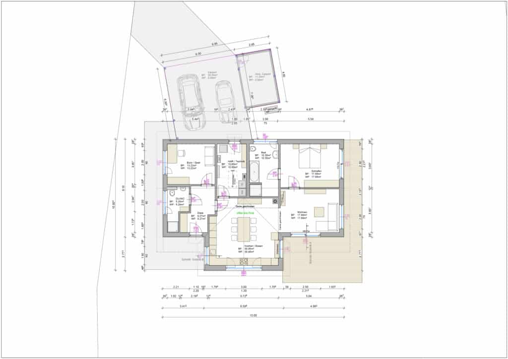 Satteldach | großer Anbau | Carport oder/und Garage in gewünschter Größe optional