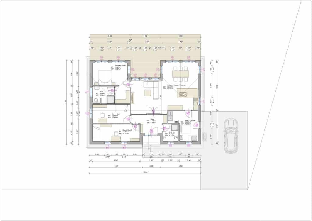 verschiedene Dachformen möglich | eingezogener Bereich im Wohnraum | eingezogener Eingangsbereich
