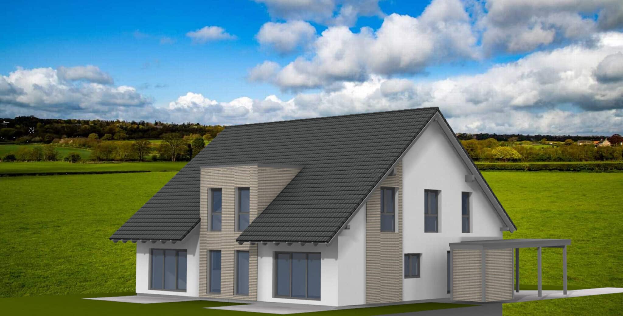 Quergiebel | Eingangsvordach | Carport oder/und Garage in gewünschter Größe optional