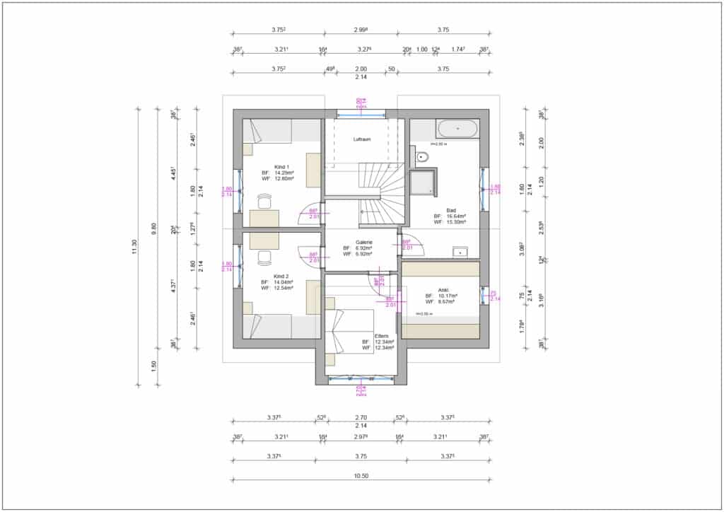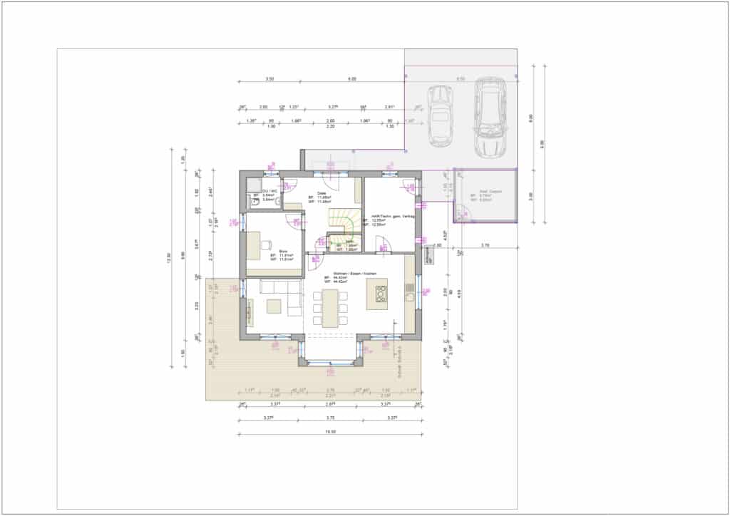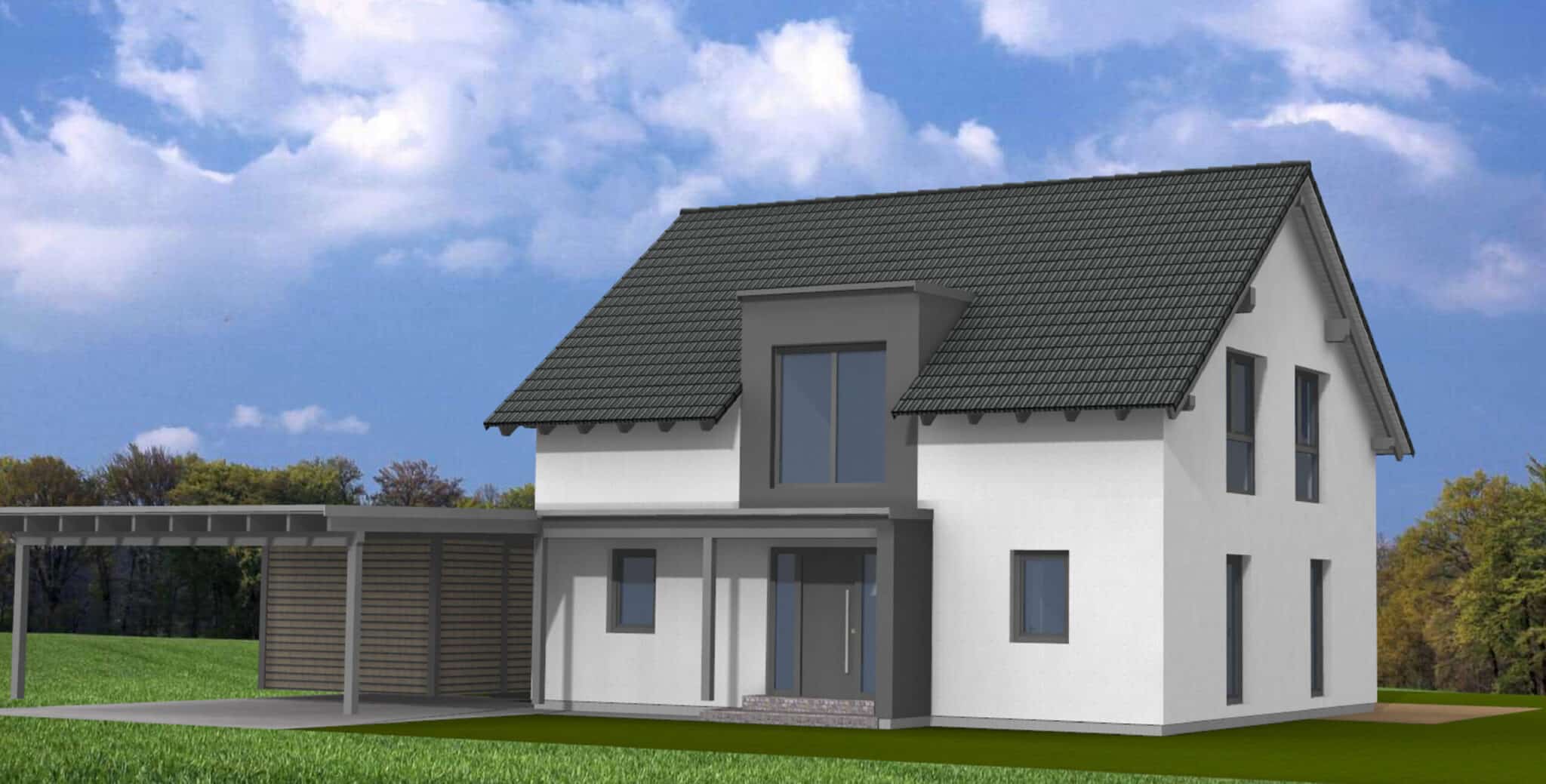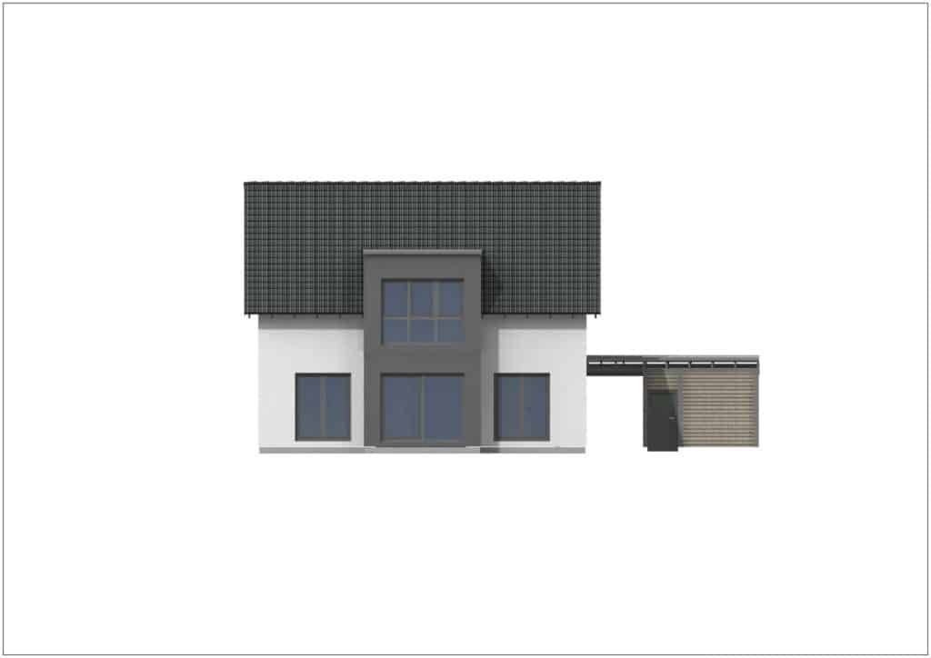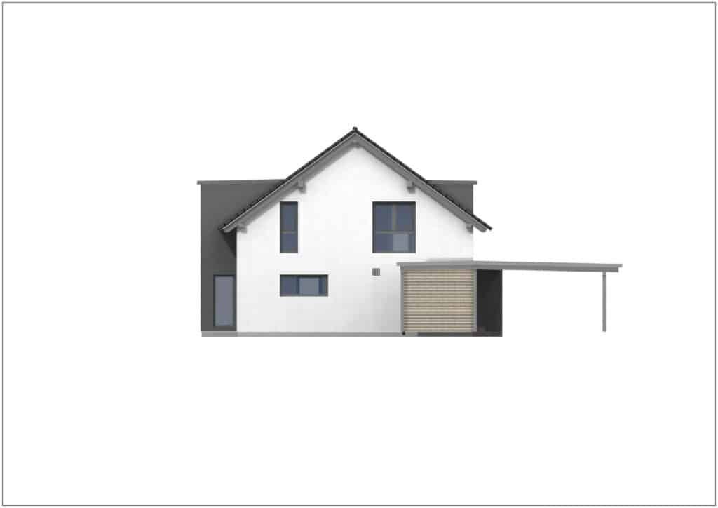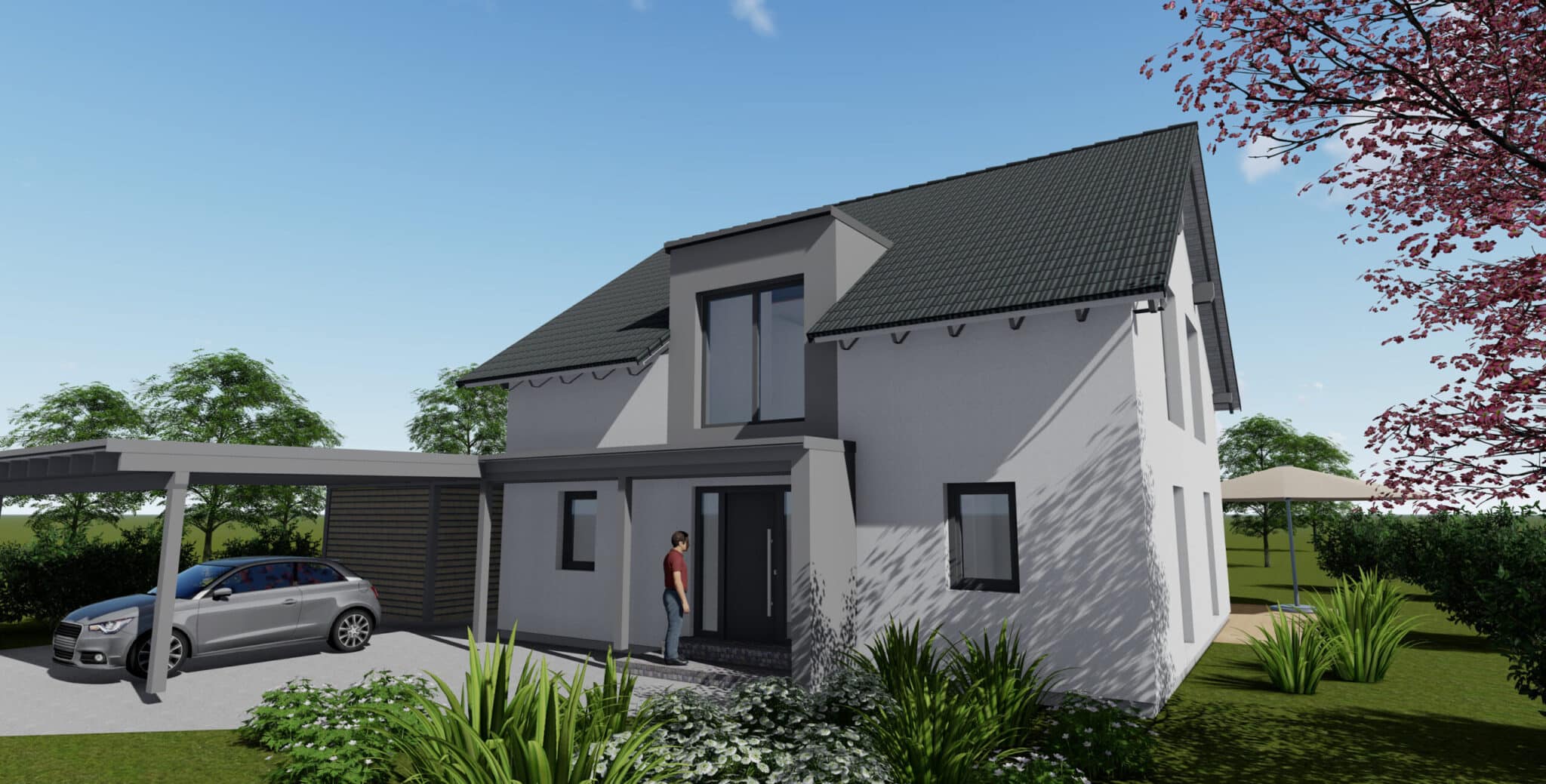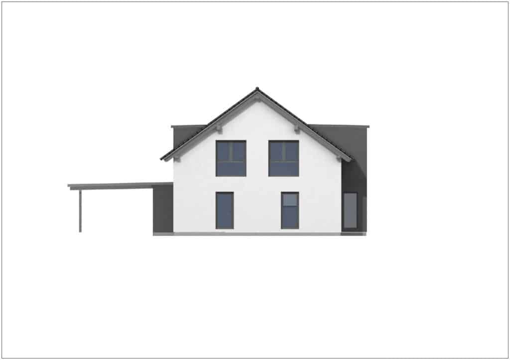 Anbau aus Erker und Quergiebel | weiterer Quergiebel über Hauseingang | Eingangsvordach | Carport oder/und Garage in gewünschter Größe optional