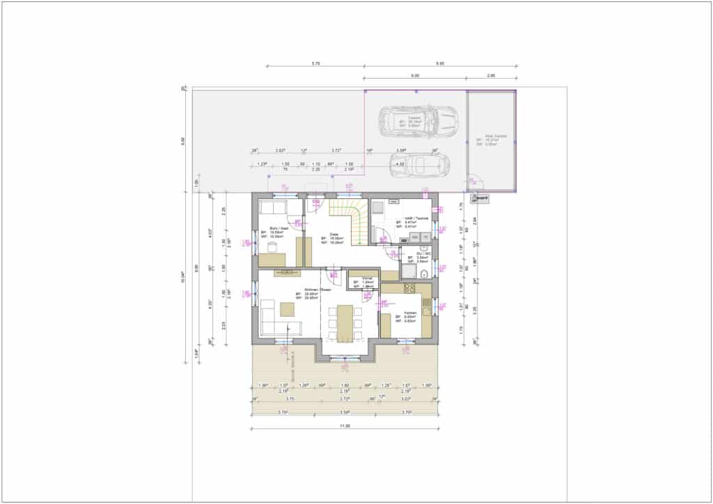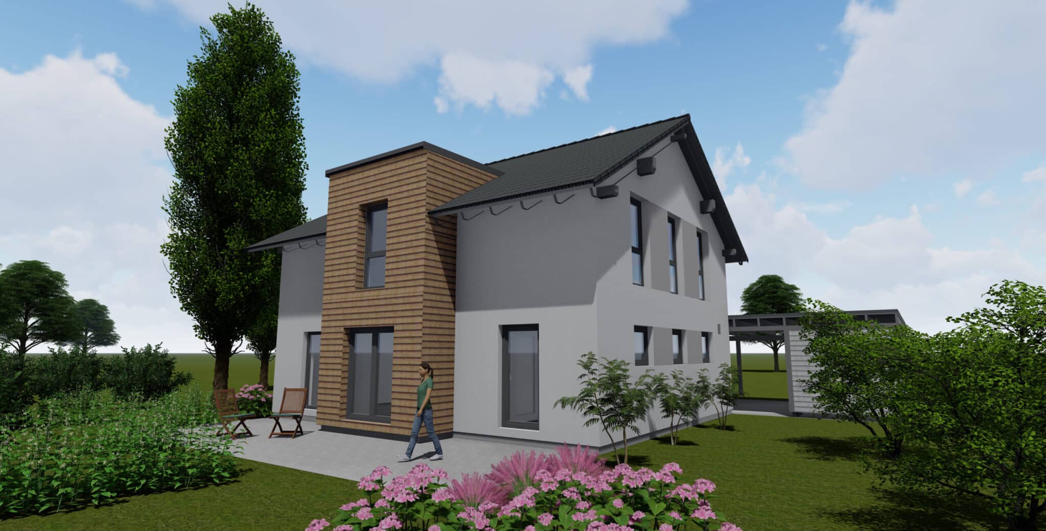 Anbau aus Erker und Quergiebel | Haustürvordach | Carport oder/und Garage in gewünschter Größe optional