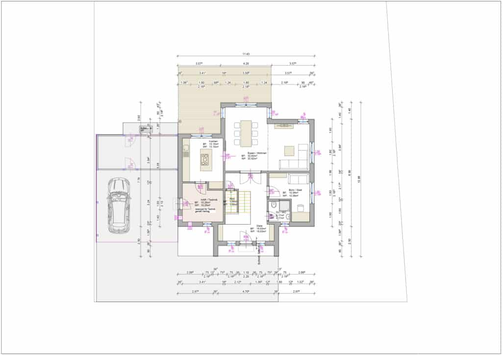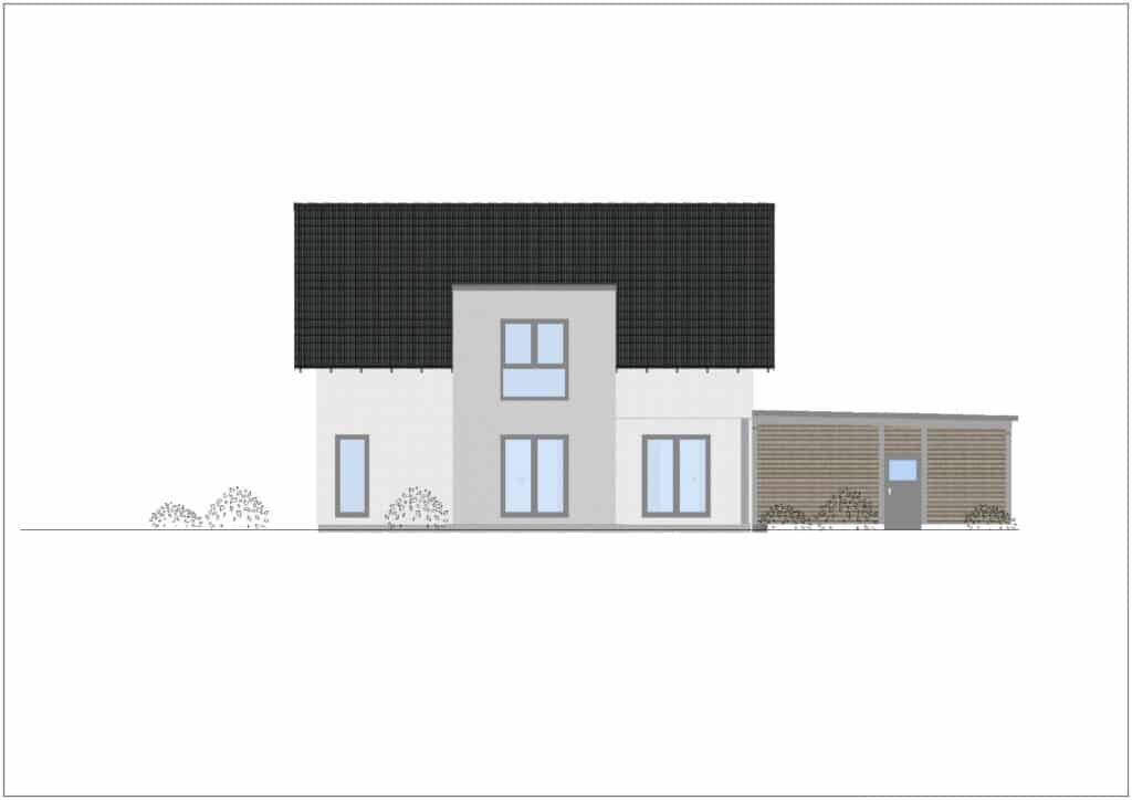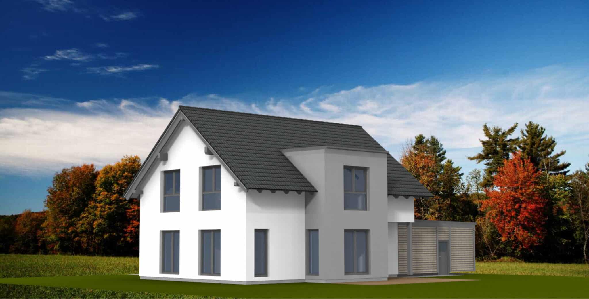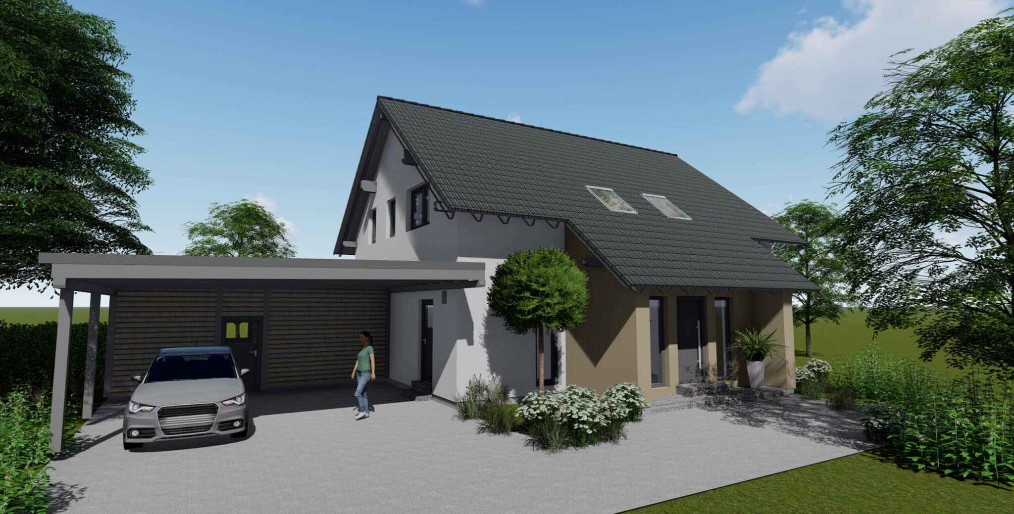 Anbau aus Erker und Quergiebel | Teilüberdachte Terrasse | weiterer Anbau im EG | Eingangsvordach | Carport oder/und Garage in gewünschter Größe optional