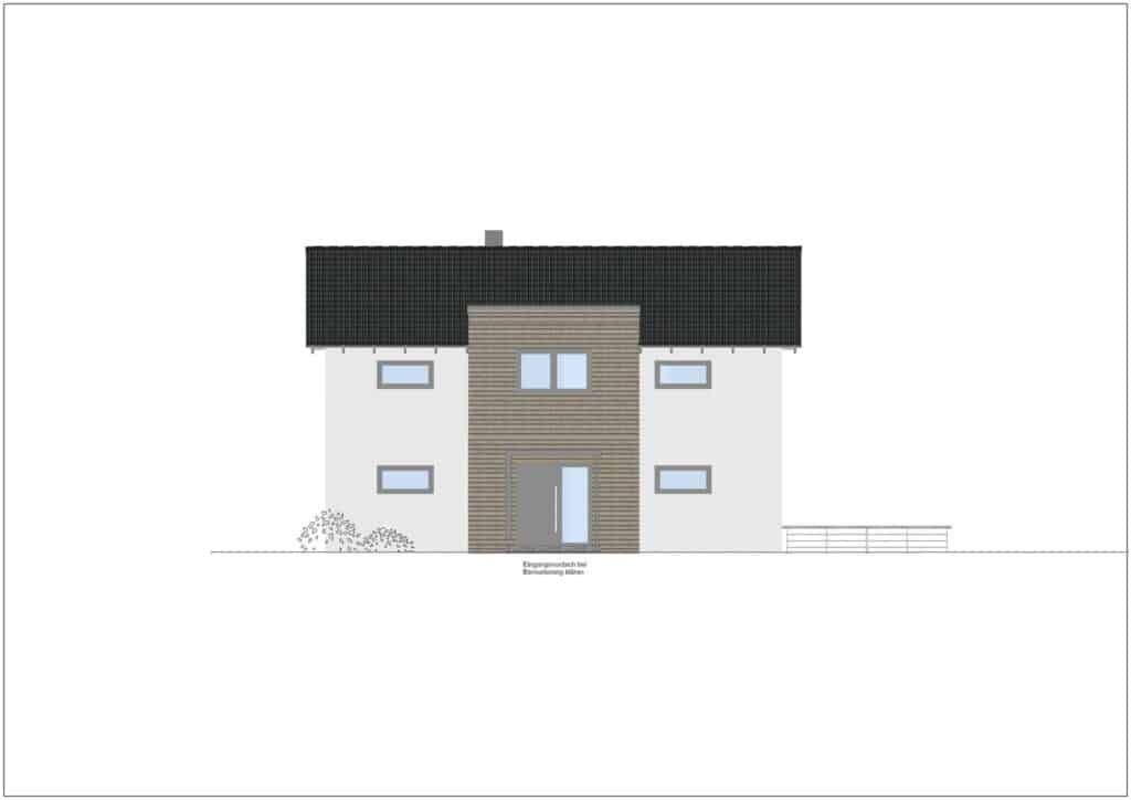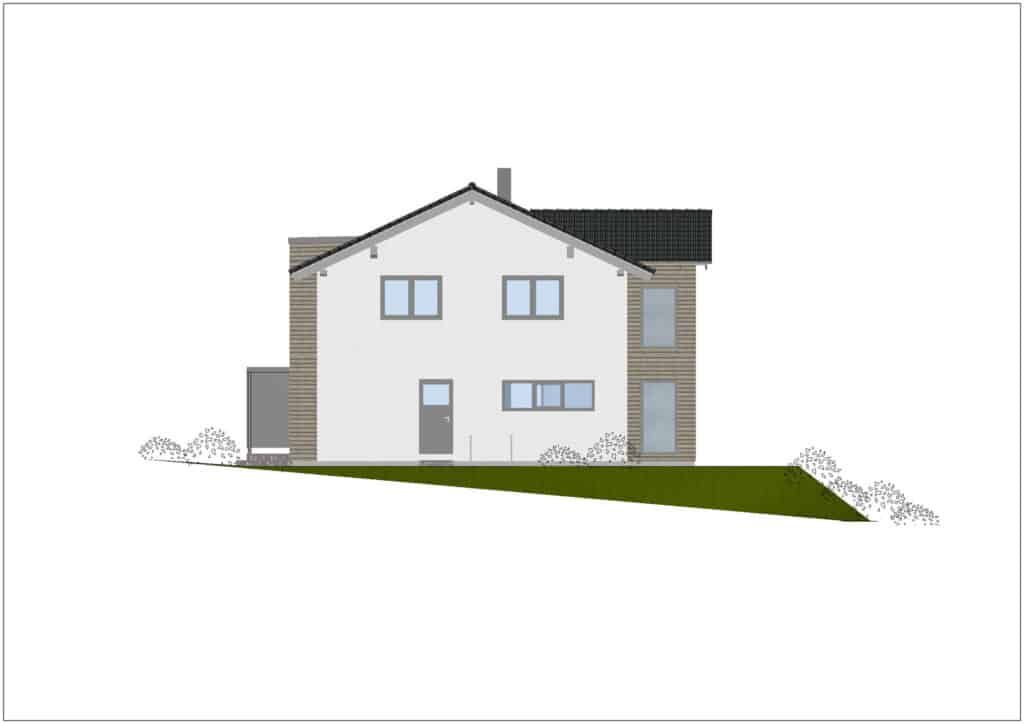 Anbau aus Erker und Quergiebel auf der Rückseite | Anbau über EG und OG auf der Eingangsseite | Eingangsvordach