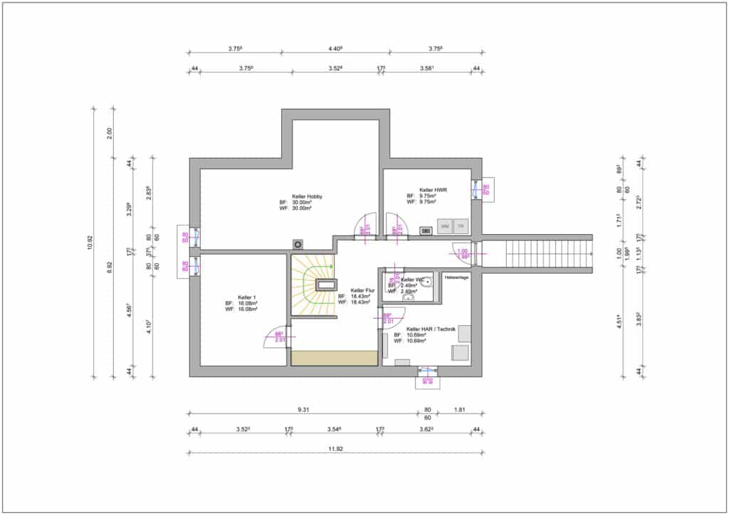 Diese Hausidee ist hier mit einem Keller abgebildet. Einen Keller können wir Ihnen optional zu jeder Hausidee mit anbieten. Dazu ist vorher immer ein Gespräch notwendig.