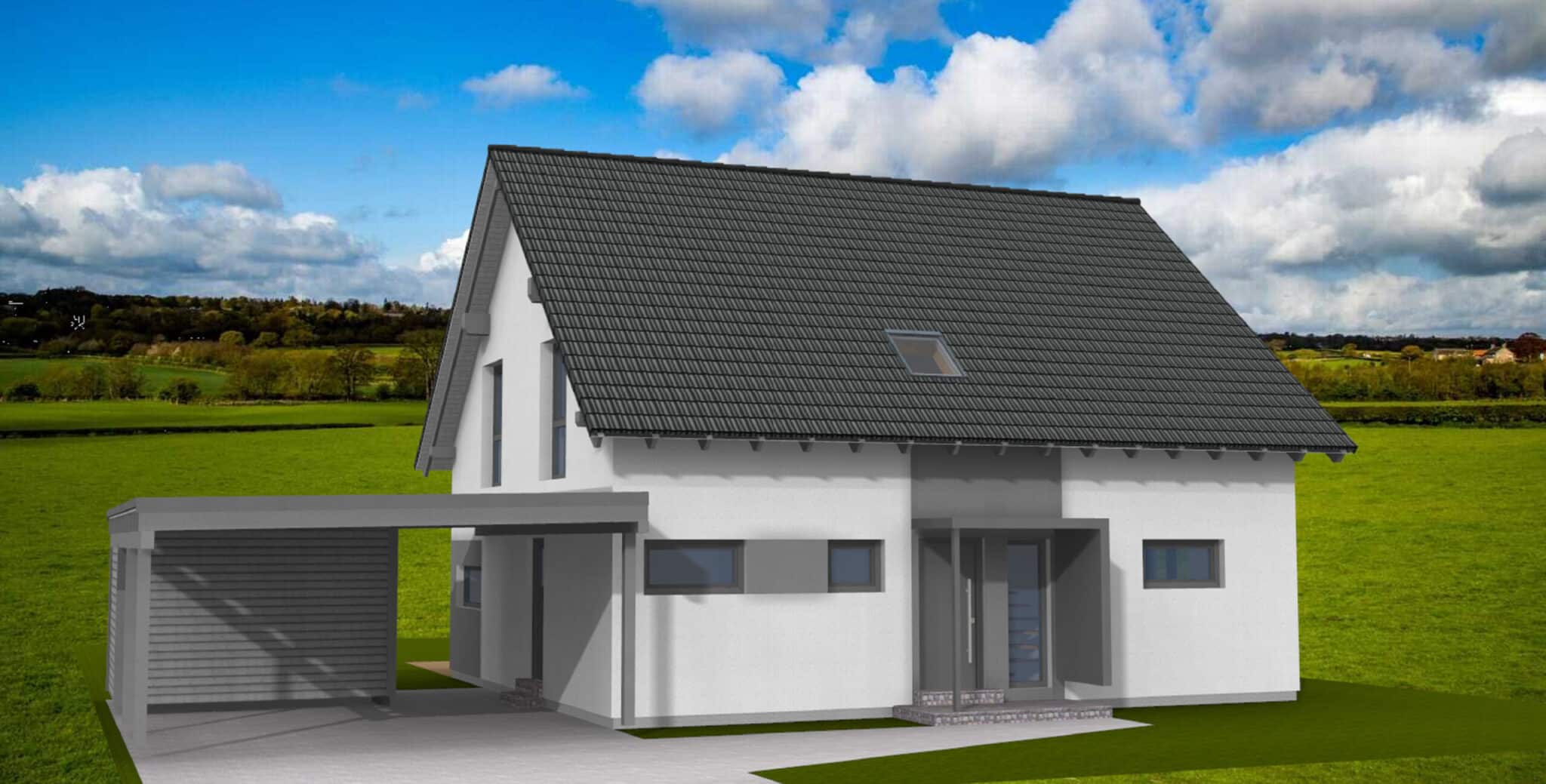 Anbau aus Erker und Quergiebel | Eingangsvordach | Carport oder/und Garage in gewünschter Größe optional