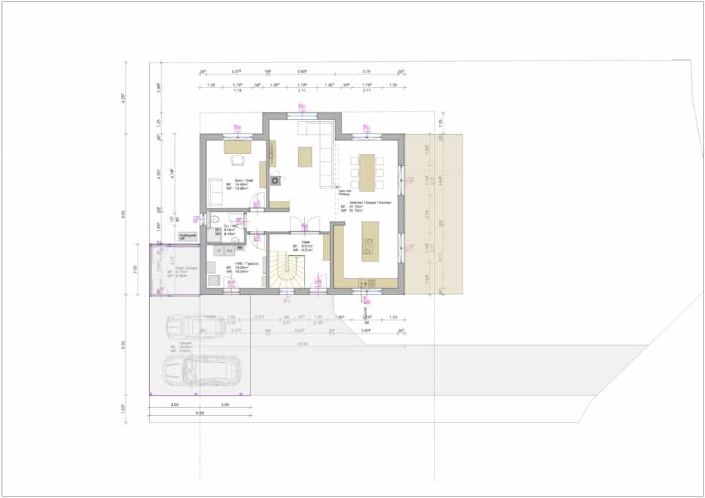 Anbau aus Erker und Quergiebel | Carport oder/und Garage in gewünschter Größe optional