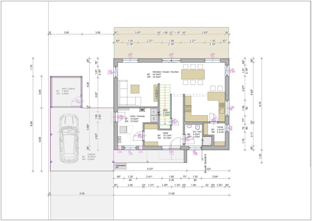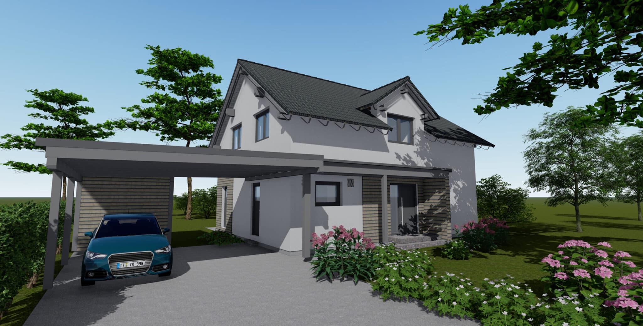 Quergiebel | Eingangsvordach | Carport oder/und Garage in gewünschter Größe optional