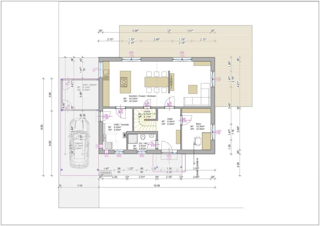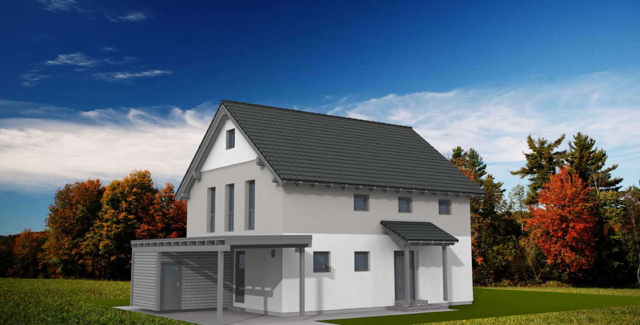 Quergiebel | 2 Fenster im Spitzboden | Eingangsvordach | Carport oder/und Garage in gewünschter Größe optional