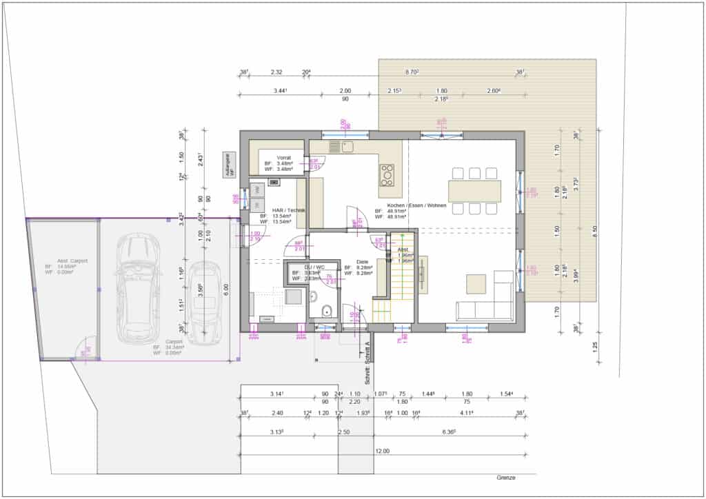 Eingangsvordach | Carport oder/und Garage in gewünschter Größe optional