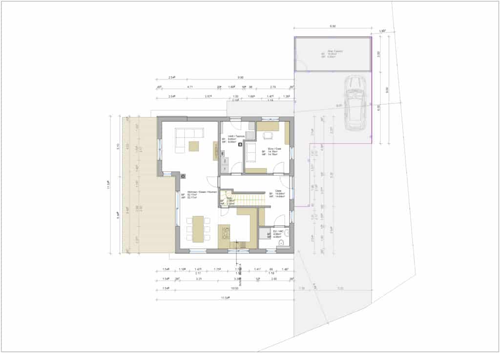 Anbau über EG und OG auf einer Giebelseite | Carport oder/und Garage in gewünschter Größe optional