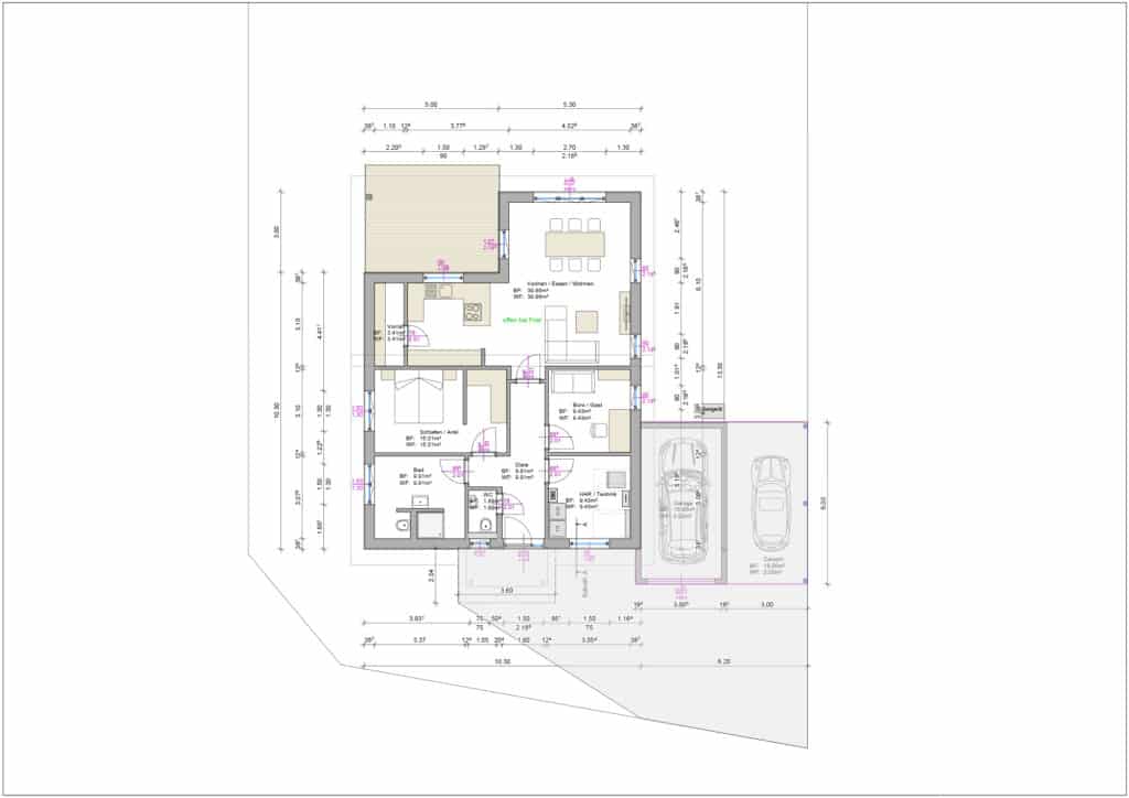 Versetztes Pultdach | Teilüberdachte Terrasse | Eingangsvordach | Carport oder/und Garage in gewünschter Größe optional